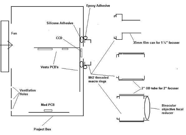 By fixing a binocular objective to another m42 ring a good reducer can be made for the camera.